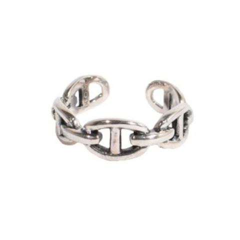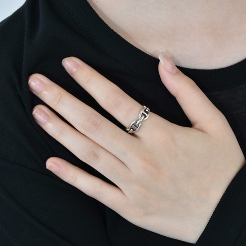 無骨でフラットなシルエットのアンカーチェーンを繋いだリング。