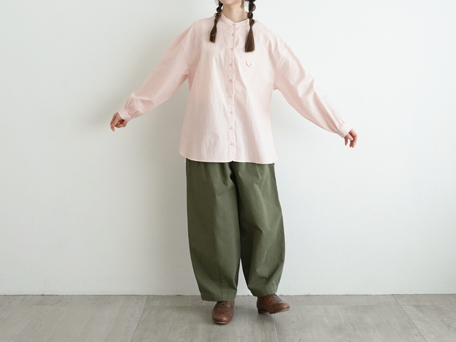 着用カラー:ピンクストライプ、モデル身長:160cm