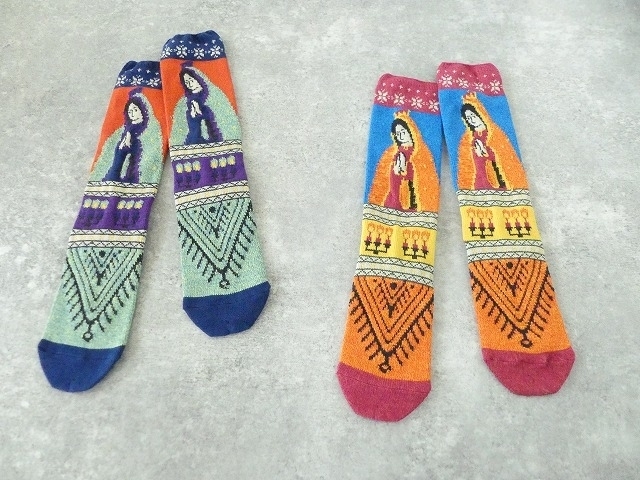 程よく厚みのあるマリア柄のソックス。
