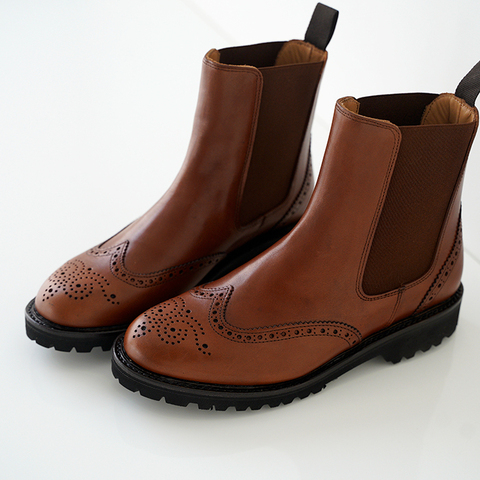 アッパーデザインは英国調のトラッドな意匠を施したフルブローグ仕様。