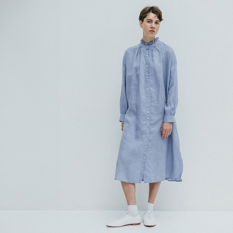 Gymphlex|コットンタイプライター バンドカラー 長袖 ワンピース gy-g0107otd-kr