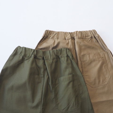身体のラインを拾いすぎない程よいゆとりのある、ムラ糸ミリタリーバックサテン クラフトパンツです。ワイドすぎず、すっきり見えるバランスにこだわりました。ウエストは総ゴム仕様で、締め付け感がなく、長時間穿いてもラクな着心地です。工房での作業や旅行などでも活躍します。