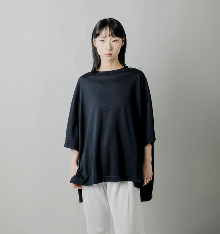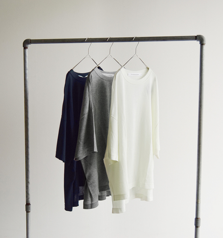 リラクシーなシルエットが美しい、ブランドの、ベストセラーアイテム。とてもシンプルな佇まいの中に、肩の傾斜が織り込まれた、独自のパターン設計が光ります。たっぷりとした身幅でありながら、着用時には不思議と身体が華奢に見えるバランスが魅力。素材には、ソフトでなめらかなタッチに、しなやかなハリを加えた、上品な雰囲気の生地を使用しています