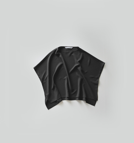 シンプルな六角形のシルエットをベースにした、ミニマルで構築的なトップス。ポンチョのような直線的な構造で、前後の身頃をラインで縫い合わせただけの潔いデザインです。
