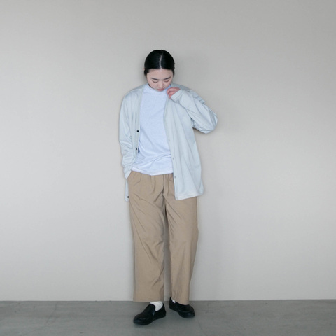 いつもありがとうございます。 寒い日とあたたかい日を繰り返しながら、季節はゆっくりと移ろっていますね。 持ち運びがしやすく、気温が読みにくい日にもぴったりなアイテムが再入荷しました。 薄手のナイロン素材を使用した、ステンカラーのワイドコートと前あきのベスト。 どちらもとっても軽くて、さっと羽織れる一枚です。 ナイロン素材ですが、スポーティになりすぎないようにシンプルに。 シルエットやデザインで落ち着いた印象に仕上げています。