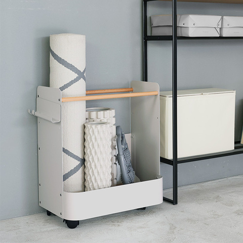 ヨガマットはもちろん、フォームローラーやストレッチボールなどもまとめて置いておけるくらい、収納力はしっかり。押し入れの奥にしまいこんでいたモノも一緒にしまえそうです。