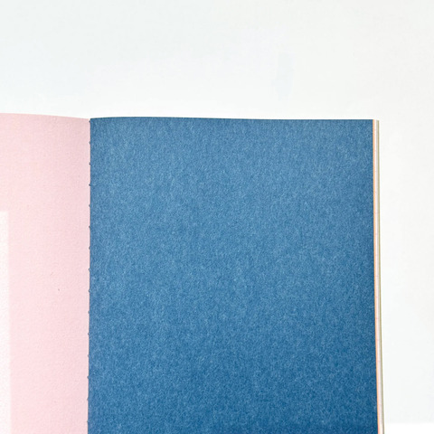 素材の異なる様々な紙を綴じ込んだA5サイズより少し小さなスクラップブック。パリパリした紙、ざらざらした紙、透明な紙、無地に方眼罫など、さまざまな紙を綴じた書くのが楽しくなるノートです。ジャーナリングやコラージュにも活躍しそうです。