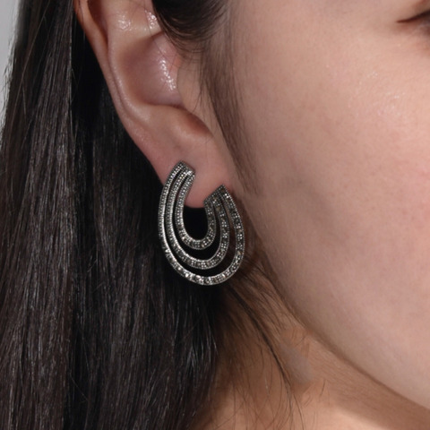 繊細な手仕事が際立つ、シックでエレガントな存在感たっぷりのピアスです。