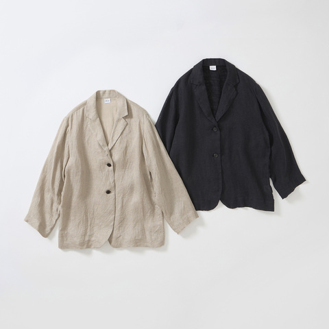ワンウォッシュ・天日干し加工で風合いよく仕上げた、ざっくりとしたリネンガーゼ生地のテーラードジャケットです。