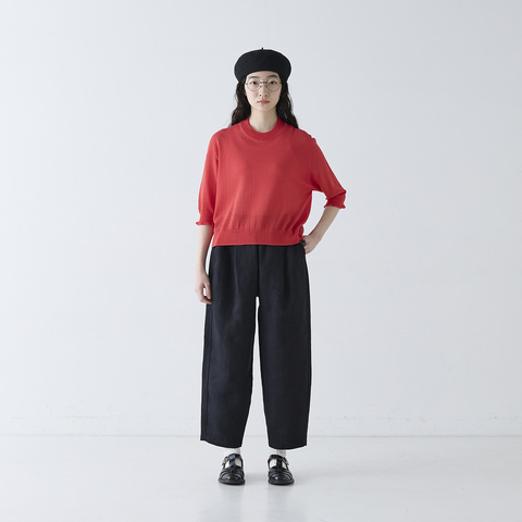 首元はモックネックで首全体を包み込まず程よく肌が見えることで、お首回りもすっきりとした印象に見せてくれます。