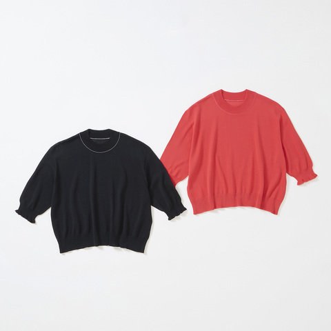 コンパクトなクルーネックで首元をすっきりと見せてくれます。