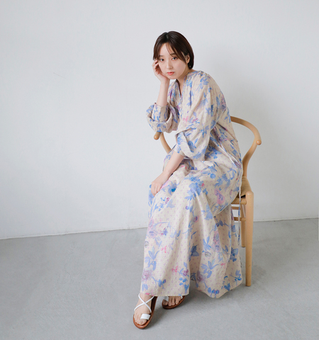 風のように軽やかなコットン素材で、快適な着心地を叶えます。ほんのり光沢感のあるドット柄とブーケ柄の融合が、上品な華やかさを演出してくれます。