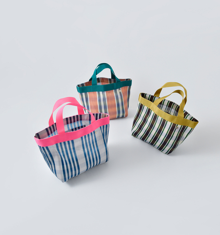 コンパクトに持てる、マルチストライプメッシュトート