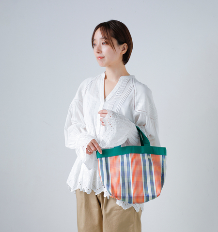 さらりとした使い心地で、シーズンムードを爽やかに演出してくれます。コンパクトなサイズ感ながら、マチ付きのデザインで見た目以上の収納力を備えており、厚みのある荷物もすっきりと収まります。目を惹くマルチストライプが、シンプルなスタイリングにほどよい彩りを添える、アクセントとしても活躍するアイテムです。