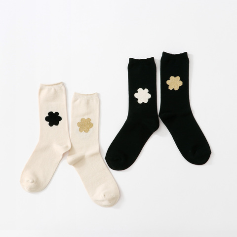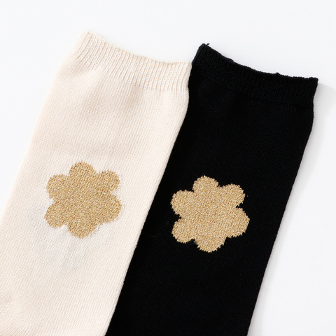 ゴールドラメとモノトーンのフラワー。ワンポイントがかわいいソックス。