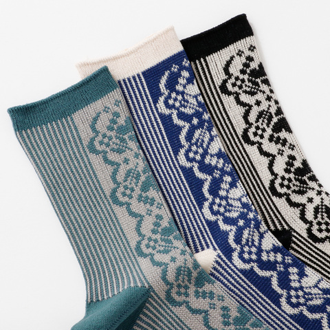 シックな配色が合わせやすい、足元が華やかになるフェットソックス。