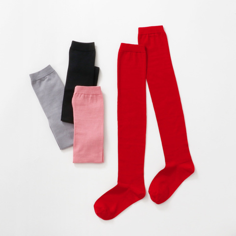 膝上まであるロング丈のハイソックスなので、タイツのようにスカートやワンピースに合わせるのはもちろん、クシュっとさせて足元にボリュームをもたせて履くのも可愛い1足です。