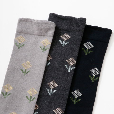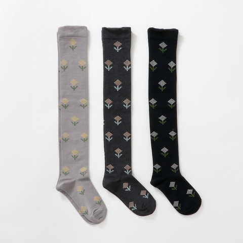 甘すぎないお花柄🌼コーデに馴染むロング丈ハイソックス