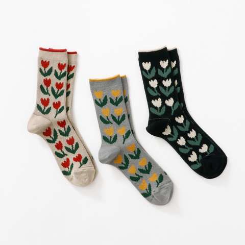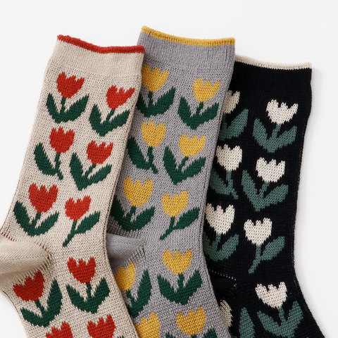 大人かわいい、ポップな雰囲気のチューリップ柄ソックス🌷