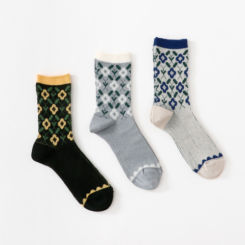 春を呼び込む足元を🌸フラワーモチーフのレトロ柄ソックス