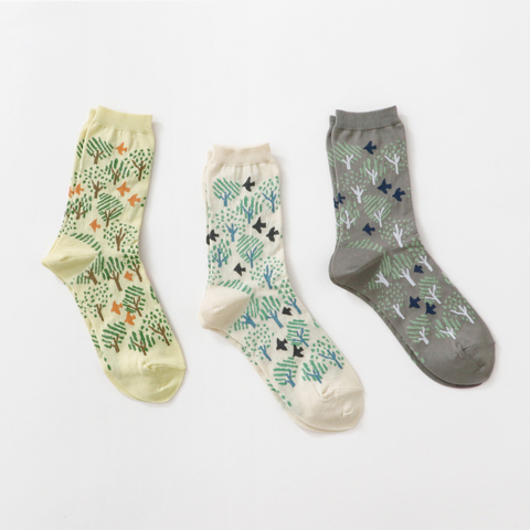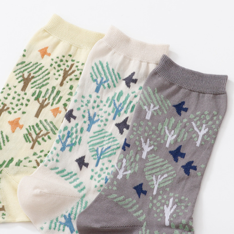 ナチュラルなタッチの柄と、柔らかなトーンの配色が魅力のソックス。