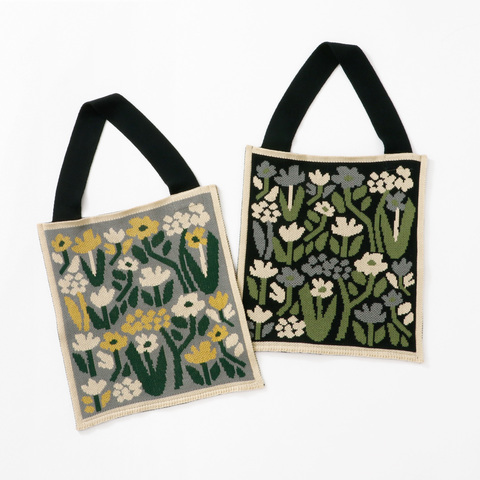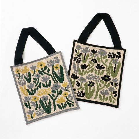 表と裏で異なる配色がポイント♪華やかなお花柄ニットバッグ。