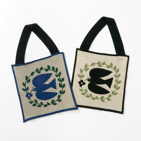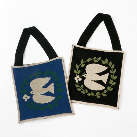 キャッチーな鳥モチーフのニットバッグ。レトロな雰囲気が◎
