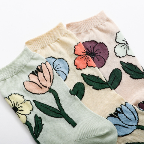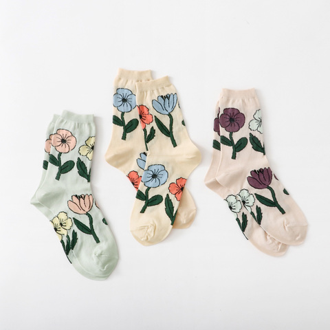 並んだお花がゆらゆらと風に揺られてダンスをしているような柄のソックスです。