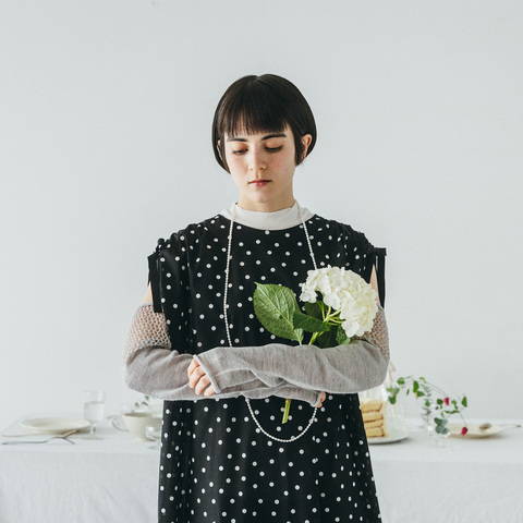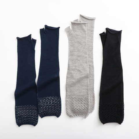 シャリ感のあるリネン糸に、吸放湿・接触冷感・UVカット効果のある糸を入れて編み立てたアームカバーです。