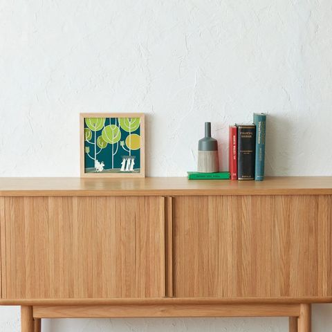 20cmのアートポスターとナチュラルカラーの木製フレームがセットになっており、届いてすぐに飾ることができます。