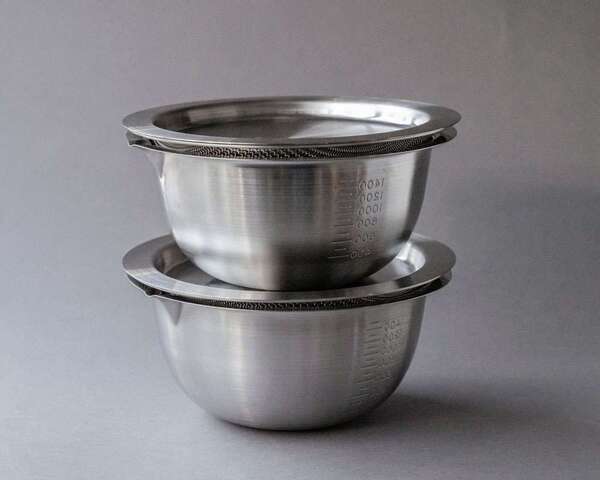 秘密はボウルとメッシュボウルを重ねた時のスキマ。1cmほど高さの差があるため、メッシュが具材を受け止めつつ水を流してくれるという仕組みなんです。単純なことながら、使ってみるとこれが気持ち良い。