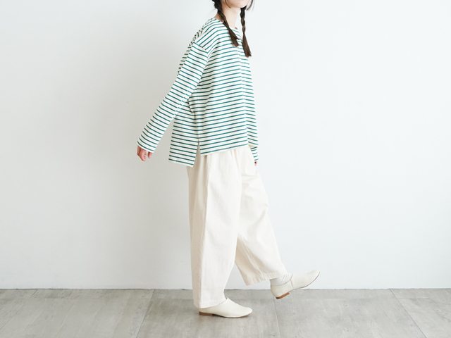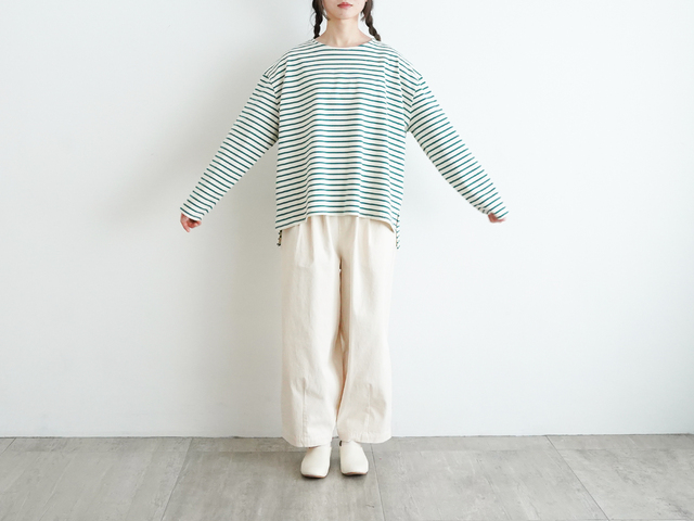着用カラー:キナリ×グリーンボーダー、スタッフ身長:160cm