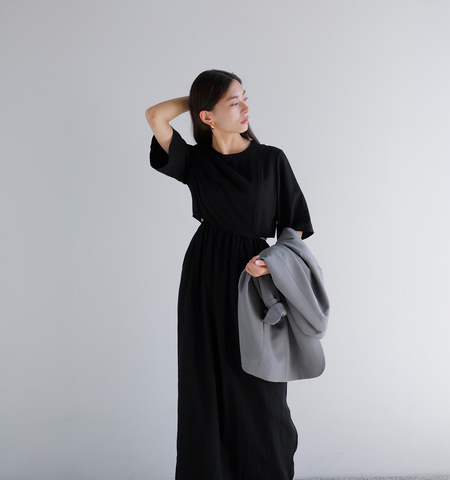 シンプルな中に美しさが宿る、上品な佇まいのコクーンドレス。