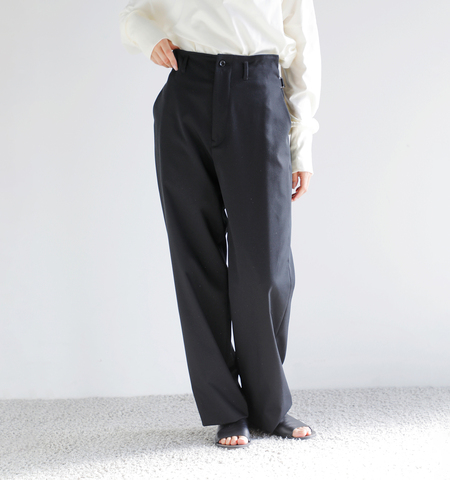 [tuning](チューニング/意味:合わせる)と名付けたトラウザーパンツは、快適な履き心地・美しいシルエット・さらには日々のケアのしやすさまでも兼ね揃えた定番のパンツです。High Waisted Trouserの一番の特徴は「ウエストアジャスト仕様」。脇のバックル+スナップボタンを調整することで 幅広いウエストサイズに対応。また調整によって、シルエットが崩れないよう細部にまで工夫を凝らしました。ライトなポリエステル生地を使用しており、ストレスもなく、しわになりにくく、洗濯しても乾きやすい機能面もポイントです。
