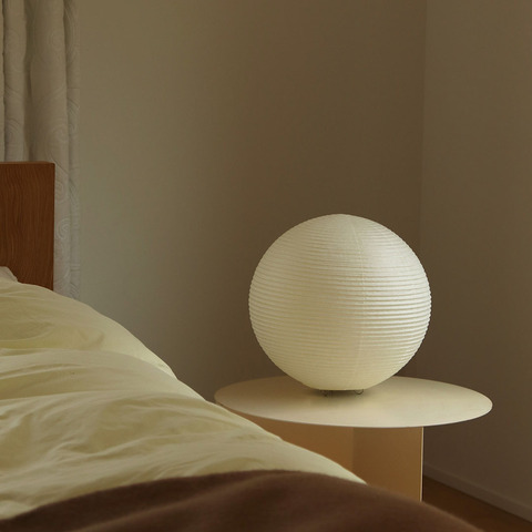 和紙の柔らかな光を生かした《ペーパームーン》の照明は、その哲学を象徴する作品で、主張しすぎず、静かに空間に溶け込む、日本的な美意識が息づいています。