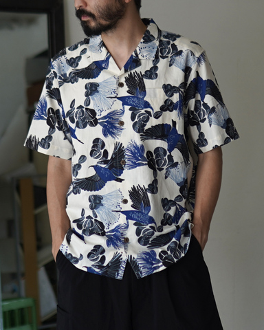 リゾートテイスト漂うアロハ柄は、熱帯の自然にインスパイアされたデザイン。ヴィンテージ感のあるココナツボタンや、左胸のポケットもアクセントに。