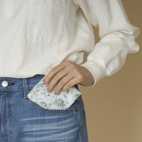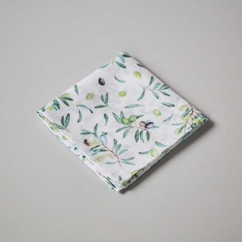 当店オリジナルのオリーブ柄で、ハンカチを作りました。少しかしこまった場でも使えるようにと選んだ上質な素材と、繊細な線画のオリーブ柄が見事にマッチ。自分用にはもちろん、ギフトでも喜ばれるアイテムだと思います。