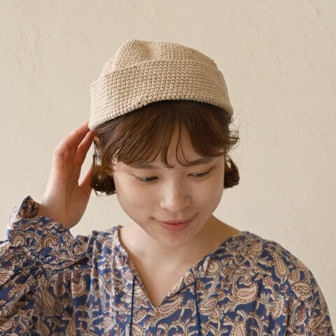 sisam|コットンコンパクトキャップ【ユニセックス】【手編みニット】【帽子】
