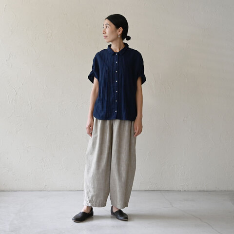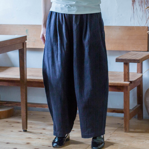 ゆったりとしたシルエットで、らくらく過ごせるコクーン型のパンツ。