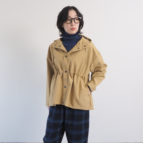 シルエットを変えて楽しめる、T/Cウェザー撥水加工 マウンテンパーカーです。フード付きのカジュアルなデザインながら、程よいハリ感のある素材とミニマルなディテールで大人っぽく。パンツにもスカートにも合わせやすく、普段使いからお出かけまで活躍します。
