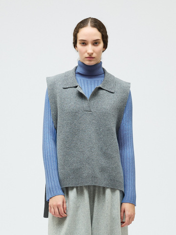 mizuiro ind|ディープ Vネック ワイド ベスト deep V neck wide vest 3-230067 ミズイロインド