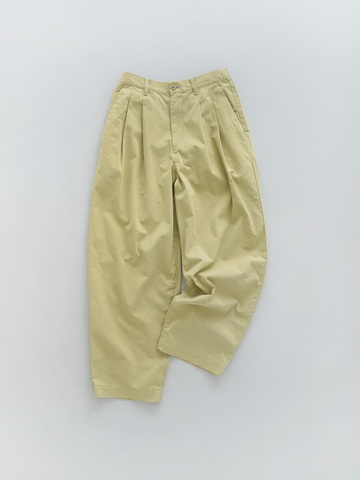 ゆったりとした履き心地ながら、裾に向かってすぼまるテーパードシルエットがすっきりと見えるパンツです。ウエストに入ったツータックが、ヒップや太ももまわりのゆとりを生み、動きやすく快適な履き心地に。タックが深めに入っていることで、縦のラインが強調され、よりシルエットが際立ちます。