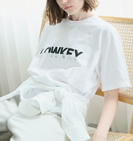 ラバーとフォイルの2トーンでプリントしたロゴが特徴。スラングとして使われるLOWKEYを2種のプリント手法で上下にセパレートしてプリントしました。