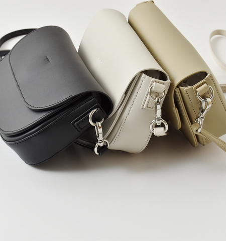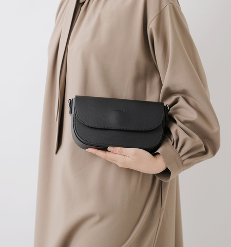 ほのかな艶があり、上質感のあるフェイクレザ―を使用。丸みを帯びたフラップと横長のシルエットが特徴です。
