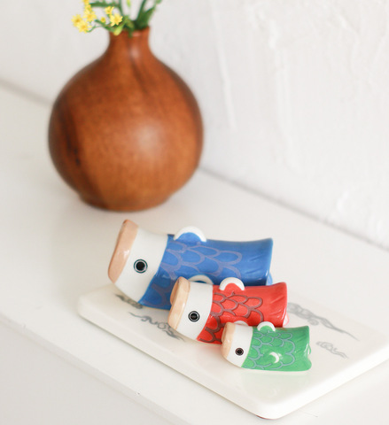 磁器ならではのやさしい風合いが魅力の、こいのぼりオブジェ。