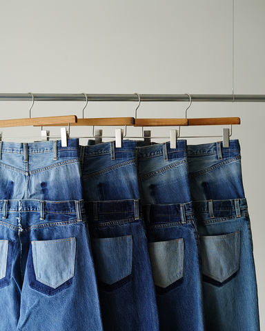 古着のジーンズを再構築した唯一無二の一本は、主張しすぎず、それでいて確かな個性を感じさせ、ワードローブの中で存在感を放ちます。