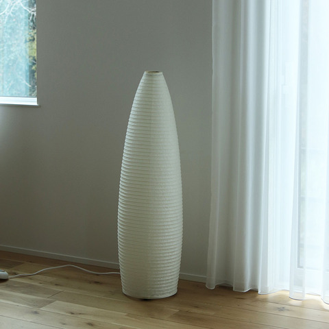 高さは86cmと女性の腰くらいだから、部屋に余計な圧迫感が加わらず、置いてみると想像以上にスタイリングしやすいことに気づきます。シェード全体が灯るので、お部屋に立体感が出てメリハリも生まれるんですよ。