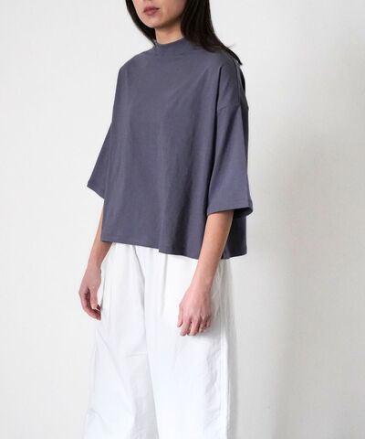 harmonie|やわらかオーガニックコットン100% 5分袖タートルネック 半袖シャツ