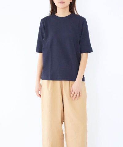 harmonie|やわらかオーガニックコットン100% 5分袖タートルネック 半袖シャツ