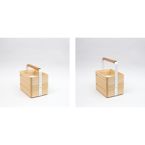 料理などを運ぶ道具として日本で使われてきた「岡持ち」を、アトリエヨクトなりの解釈でリデザインしたのが「OKAMOCHI(オカモチ)」です。本来の岡持ちとしての使い方はもとより、日常の身の廻りの道具箱に、仕事に、ピクニックや茶道具に、おもちゃ箱にと、使う人それぞれが使い方や組み合わせ発見する楽しみがあります。